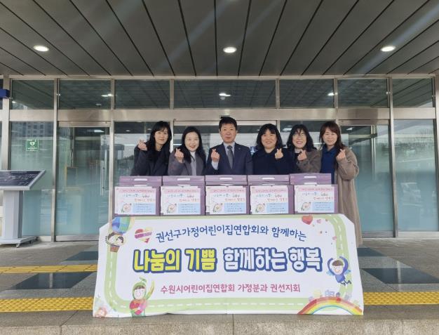 고호 권선구청장은 “한결같은 마음으로 어려운 이웃들을 생각하여 주는 수원시어린이집연합회 가정분과 권선지회 회원들에게 감사하다”며 “소중한 마음들이 꼭 필요한 가정들에 잘 전달되도록 하겠다”라고 감사 인사를 전했다.