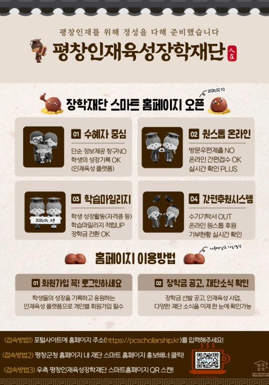 아울러, 수기 기탁서 작성의 번거로움을 없앤 온라인 간편 후원 시스템을 신설하여, 평창의 인재를 키우는 일에 누구나 쉽고 투명하게 동참할 수 있는 기부 환경을 조성했다.