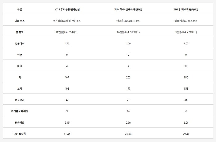 | ▲ 타수 난도가 높았던 상위 3개 홀의 세부 내용 |