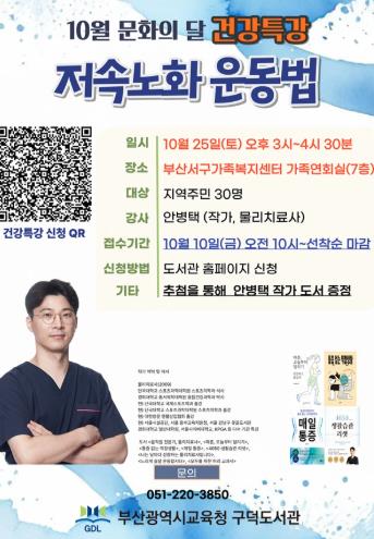 | ▲ 부산구덕도서관, 지역주민 위한 ‘저속노화 운동법’ 특강 개최 |