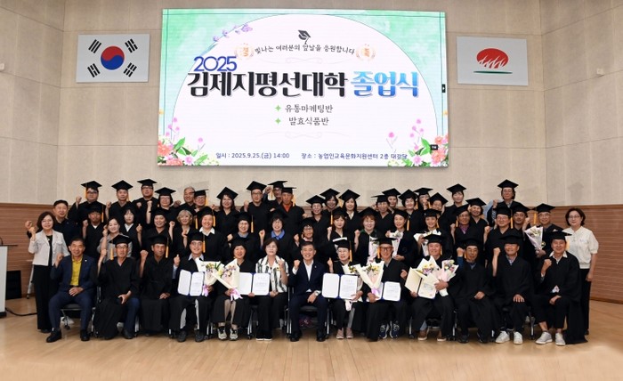 [파이낸셜경제=김예빈 기자] 김제시는 지난 25일 농업인교육문화지원센터에서 '2025학년도 김제시지평선대학 졸업식'을 80여명이 참여한 가운데 개최했다고 밝혔다