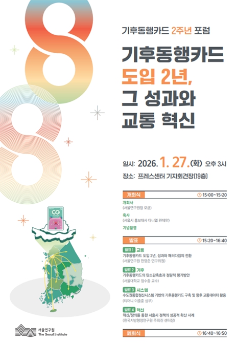 아울러 교통카드와 기후동행카드를 통해 축적된 방대한 교통 데이터의 활용 방안과 향후 대중교통 서비스 고도화 및 정책 지원을 위한 데이터 기반 미래상을 제시할 예정이다.