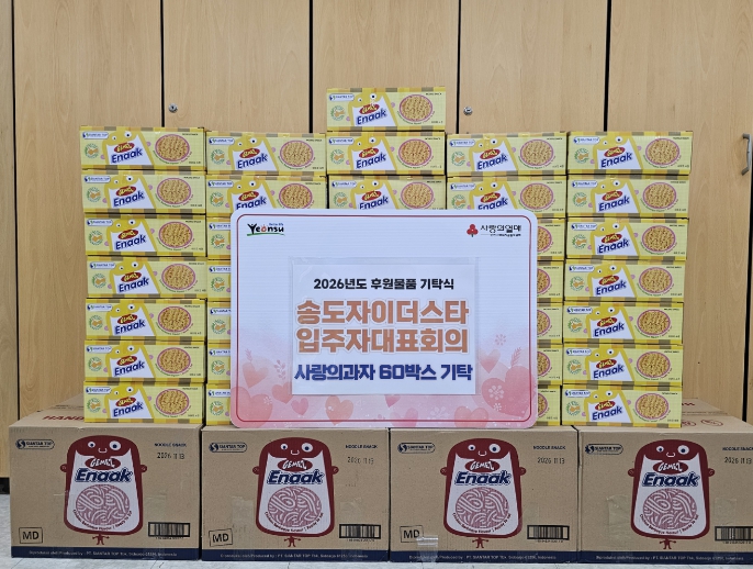 [파이낸셜경제=김기보 기자] 연수구는 지난 26일 송도자이 더 스타 입주자대표회의(회장 김소희)로부터 지역 내 취약계층 아동을 위한 과자 60상자를 전달받았다.
