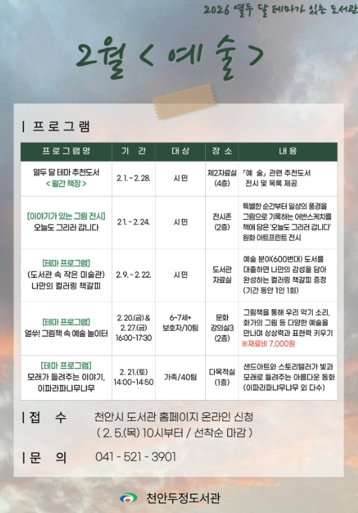 | ▲ 천안두정도서관, 2월 테마 ‘예술’ |