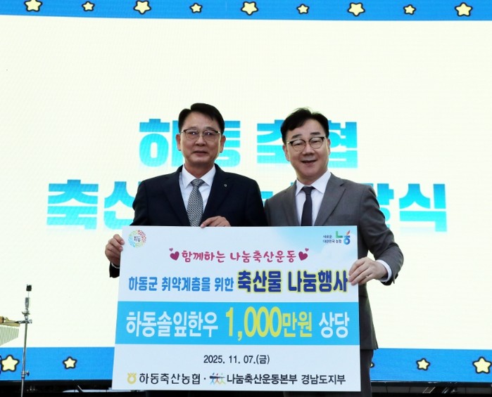 [파이낸셜경제=김예빈 기자] 하동군은 7일 개최되는 ‘하동별맛축제’를 맞아 하동축산농협(조합장 김구영)이 1천만 원 상당의 하동한우꾸러미 120박스를 기탁했다고 밝혔다.
