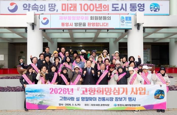 천영기 통영시장은 “향우회 회원들의 발걸음 하나하나가 전통시장과 지역에 큰 힘이 된다”며 “고향을 잊지 않고 찾아주시는 마음에 진심으로 감사드리며, 따뜻한 정이 이어지는 통영을 만들어가겠다”고 전했다.