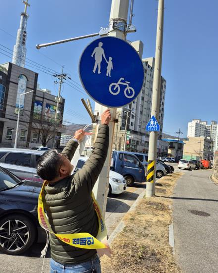 | ▲ 동해시, 개학기 초등학교 주변 불법광고물 일제정비 추진 |