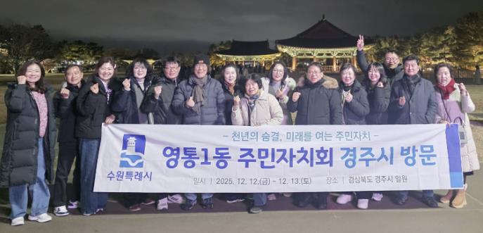 [파이낸셜경제=김기보 기자] 수원시 영통구 영통1동 주민자치회는 지난 12일, 주민자치 역량 강화를 위한 벤치마킹을 실시하며 경주시 일대의 우수 문화공간을 방문했다.