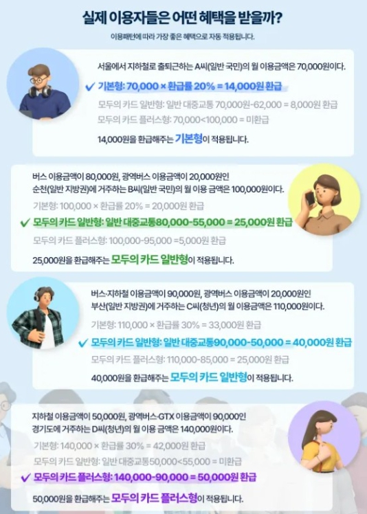 모두의 카드가 시행됨에 따라 한 달 동안 환급 기준금액을 초과해 대중교통비를 지출한 경우 초과분에 대해 모두 돌려받을 수 있다.