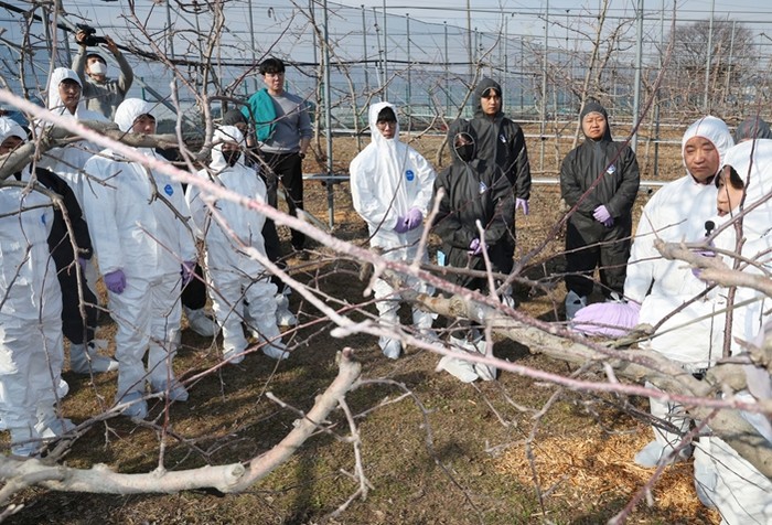 | ▲ 관내 사과·배 재배 농가를 대상으로 겨울철 궤양 제거 작업과 예방 중심 방제 지도를 강화하며 선제적 대응에 나서고 있다 |