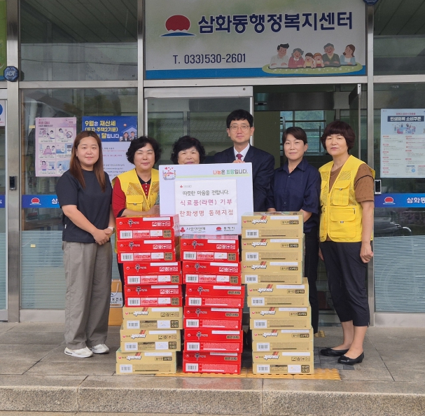 [파이낸셜경제=조성환 기자] 한화생명 금융서비스 동해지점(지점장 지종탁)에서 지난 17일 삼화동행정복지센터를 방문하여 라면 2종 20박스를 어려운 이웃들에게 전달해달라며 기탁했다.
