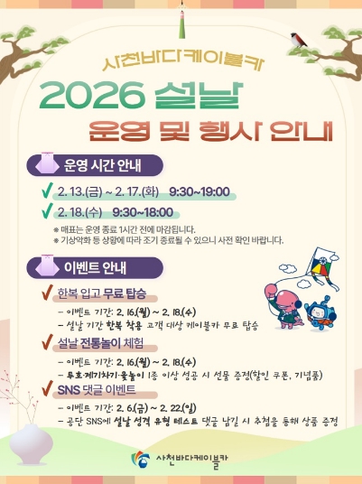 | ▲ 사천바다케이블카, 2026년 설 연휴 운영 및 이벤트 안내 |