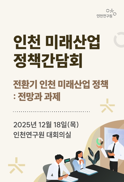 주제발표는 인천연구원 서봉만 경제환경연구부장이 맡아 “전환기 인천 미래산업 정책: 전망과 과제”를 발표한다.