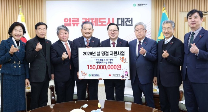 [파이낸셜경제=김영란 기자] 대전시는 2026년 설 명절을 앞두고 대전사회복지공동모금회로부터 저소득 소외계층을 위한 성금 1억 5천만 원을 기탁받았다.