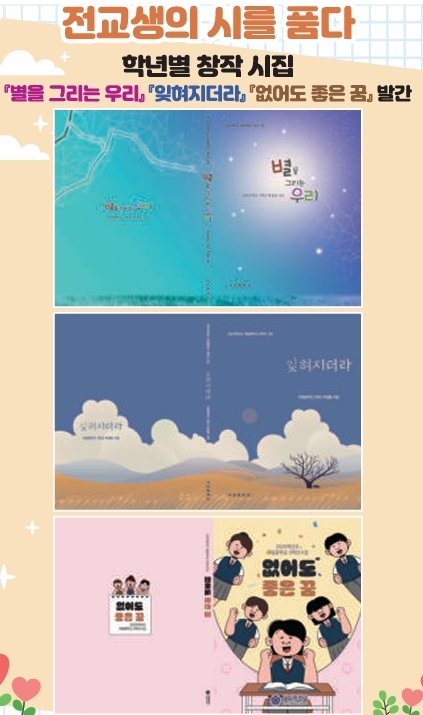 이번 시집 발간은 학생들이 한 해의 학교생활을 돌아보며 자신의 감정을 시로 정리하고 서로 공감하는 시간을 갖기 위해 기획됐으며 특히 각 학년의 성장 단계와 정서를 반영한 시집 제목은 학생들의 개성과 고민을 고스란히 담아내어 눈길을 끈다.