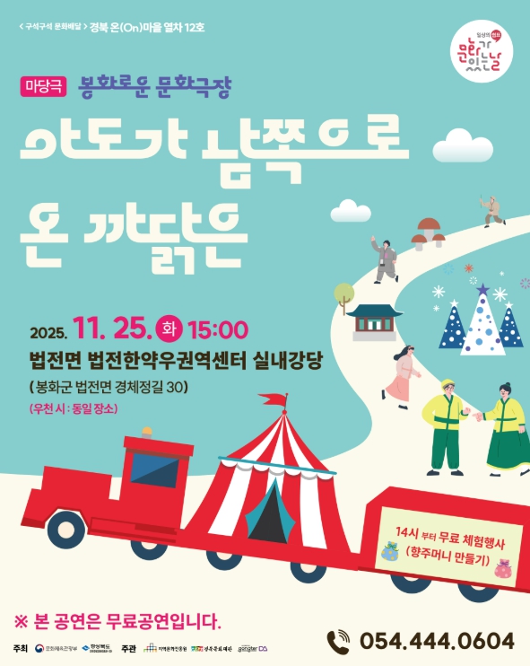 [파이낸셜경제=김지훈 기자] (사)문화창작집단 공터다(대표 : 황윤동)는 문화체육관광부와 경상북도가 주최하고 경북문화재단, 지역문화진흥원이 주관하는 2025년 문화가 있는 날 '봉화로운 문화극장' 사업을 진행한다.