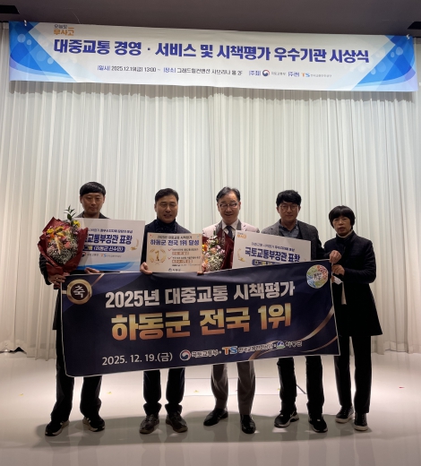 [파이낸셜경제=김예빈 기자] 하동군은 지난 19일 서울 그랜드힐컨벤션에서 열린 ‘2025년 대중교통 시책평가 시상식’에서 전국 76개 군 단위 지방자치단체 가운데 종합 1위를 차지하며 국토교통부 장관상을 수상했다.