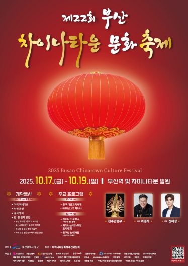 [파이낸셜경제=박영진 기자] 부산의 대표적인 축제인 '제22회 부산차이나타운 문화축제'가 10월 17~19일 3일간 부산역 광장과 차이나타운 일원에서 열린다. 이번 축제는 한중문화 공연과 중식요리 컨셉을 강조하기 위해 기획했고, 친환경 축제를 위한 다회용기 도입 등 사회적 이슈에 부합하는 축제로 준비되고 있다.