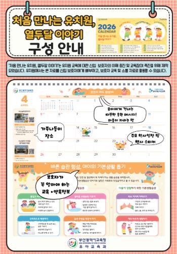 [파이낸셜경제=박영진 기자] 부산광역시교육청은 2026학년도 유치원 입학을 앞둔 학부모들의 불안감을 해소하고 유치원 교육에 대한 이해를 돕기 위해 ‘처음 만나는 유치원, 열두 달 이야기’자료 12,500부를 제작해 유치원별로 배포한다고 24일 밝혔다.