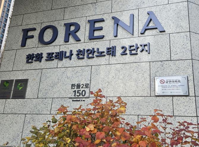 한화포레나 천안 노태2단지 아파트는 지난 달 거주 세대의 절반 이상이 동의한 가운데 금연구연 지정 신청서를 제출해 서북구 제38호 금연아파트로 지정됐다.