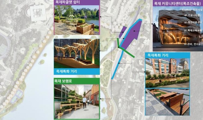 건축물 내부에는 청년들을 위한 커뮤니티 시설과 목재의 가치를 배우고 체험할 수 있는 목재교육·문화체험 및 홍보 시설이 조성된다.