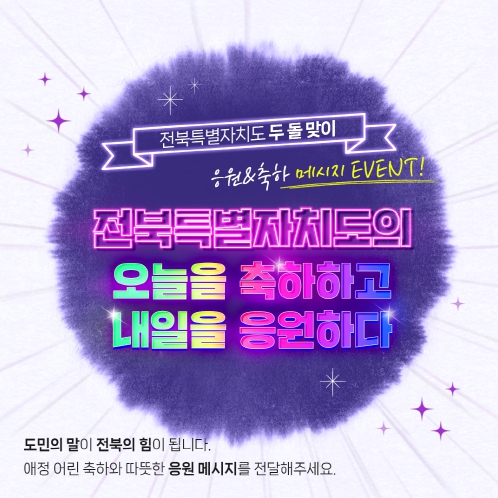 [파이낸셜경제=김예빈 기자] 전북특별자치도는 출범 2주년을 맞아 도민이 직접 참여하는 '도민 참여 축하·응원 메시지 이벤트'를 1월 12일부터 23일까지 운영한다.