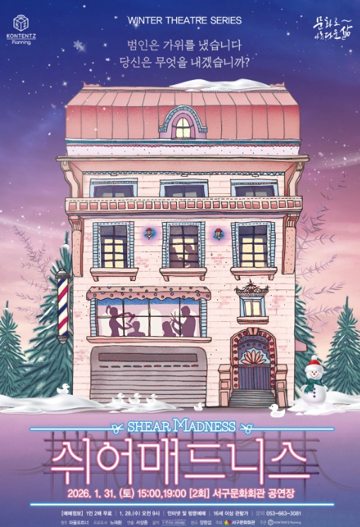 [파이낸셜경제=김지훈 기자] 서구문화회관은‘Winter Theatre Seires(겨울 연극 시리즈)’의 첫 번째 순서로 연극'쉬어매드니스'를 1월 31일 오후 3시, 7시 (2회) 무대에 올린다.