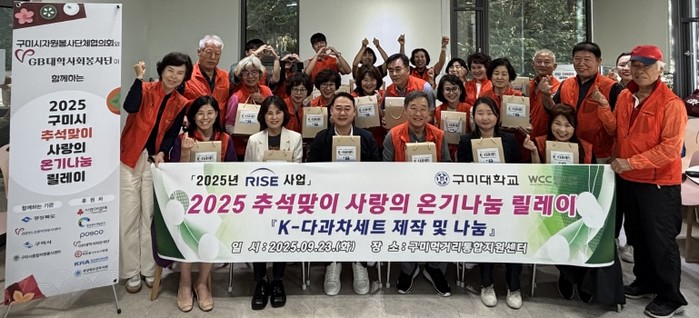 이번 행사는 자원봉사단체협의회, GB대학사회봉사단 등 30여명의 봉사자들이 함께 참여하여 전통 쌀튀밥 견과강정과 청귤청으로 구성된 다과 세트 만들기를 진행했다. 봉사자들은 다과세트 제작 방법 교육을 받고, 직접 재료를 다듬고 조리해 완성품을 포장했으며, 만들어진 다과세트는 구미시 가족센터와 지역아동센터협의회를 통해 다문화 가정 총 100가구에 전달됐다.
