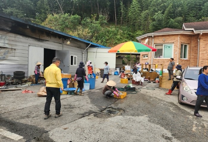아산면 의용소방대(대장 하성주) 대원들은 자발적으로 현장을 찾아 잔해물 정리와 청소, 주변 정돈 등 복구활동을 진행하며 피해 주민의 빠른 일상 회복을 도왔다.