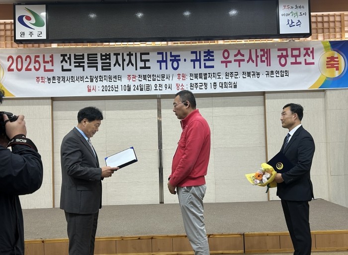 [파이낸셜경제=김예빈 기자] 고창군 귀농인인 오세훈씨(57)가 지난 24일 열린 ‘2025 전북 귀농귀촌 우수사례 공모전’에서 우수상을 수상했다.