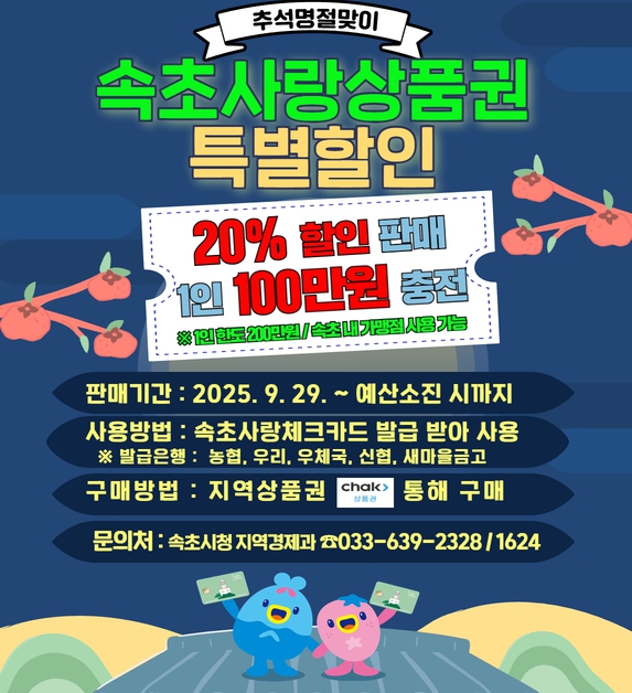 | ▲ 추석맞이 속초사랑상품권 20% 특별 할인 |