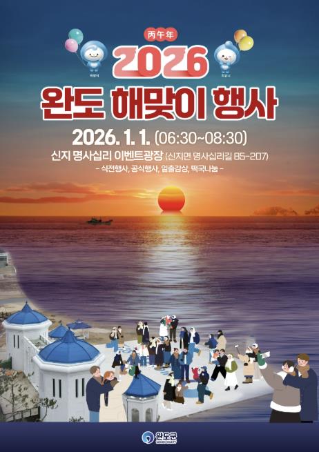 [파이낸셜경제=김예빈 기자] 완도군은 내년 1월 1일 오전 6시 30분부터 8시 30분까지 신지 명사십리 이벤트 광장에서 ‘병오년(丙午年) 해맞이 행사’를 개최한다.