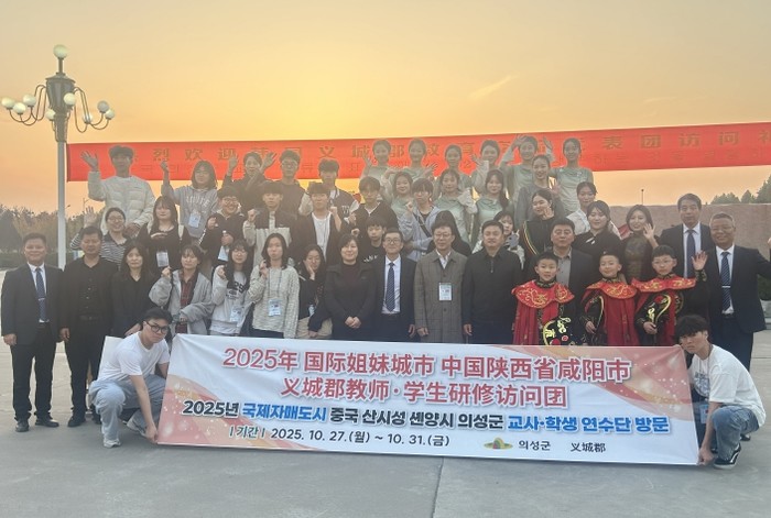 [파이낸셜경제=김지훈 기자] 의성군은 10월 27일부터 31일까지(4박 5일) 의성교육지원청 전영배 교육지원과장을 단장으로 하는 교류단 25명(중·고등학생 및 인솔자 등)이 국제자매결연 도시인 중국 셴양시(咸陽市)를 방문해 다양한 문화체험 활동을 진행하고 있다고 밝혔다.