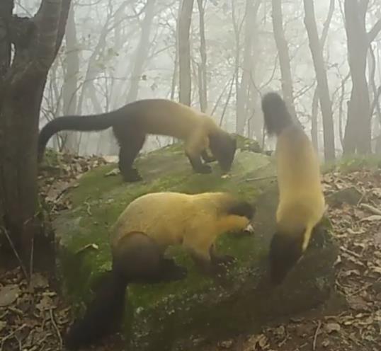 | ▲ 고창문화관광재단, 방장산 환경조사 중 CCTV에 포착된 담비 개체군(2025년10월19일 촬영). |