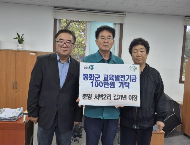 김기년 이장은 “작은 정성이지만 봉화군의 미래를 이끌어갈 학생들에게 도움이 되기를 바라는 마음으로 기탁하게 됐다.”며 “앞으로도 지역사회를 위한 나눔에 꾸준히 동참하겠다.”라고 소감을 밝혔다.