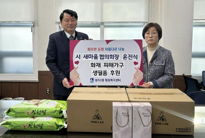 [파이낸셜경제=김기보 기자] 지난 23일, 윤진석 수원시 새마을협의회장이 최근 화재로 피해 입은 수원시 장안구 정자3동 주민을 돕기 위해 물품을 후원했다.