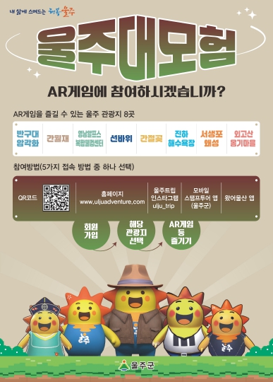 [파이낸셜경제=금윤지 기자] 울산 울주군이 지역 대표 관광지를 무대로 한 AR(증강현실) 게임 ‘울주대모험’과 관광객 참여형 이벤트를 운영한다고 25일 밝혔다.