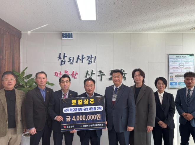 [파이낸셜경제=김지훈 기자] 지역자생봉사단체인‘로컬상주’가 2025년 12월 4일 경상북도상주교육지원청에 학교운동부 운영지원금 400만원을 기탁했다.