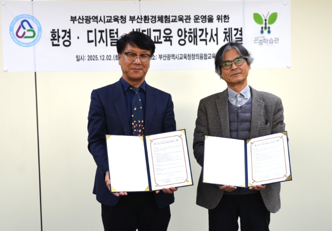 [파이낸셜경제=박영진 기자] 부산광역시교육청 창의융합교육원은 지난 2일 창의융합교육원에서 디지털곤충학습관과 부산환경체험교육관 운영을 위한 환경·디지털·생태교육 양해각서(MOU)를 체결했다고 밝혔다.