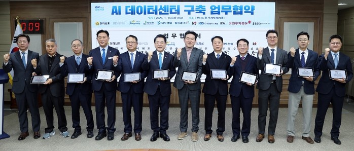 강진군은 지난 16일 전라남도청 서재필실에서 전라남도, ㈜베네포스와 함께 ‘강진 AI 데이터센터’ 건립을 위한 업무협약(MOU)을 체결했다.