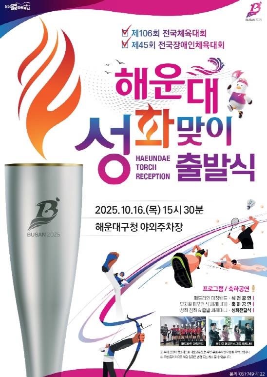 25년 만에 부산에서 열리는 전국체전·전국장애인체전의 성공 개최를 기원하고, 주민과 함께 축제 분위기를 나누기 위해 마련된 이번 행사는 마칭밴드 식전공연과 뮤지컬팀 축하공연으로 막을 연다. 이어 성화 인계 및 점화, 기념 행진이 진행되며, 성화는 오후 4시 15분 구청 정문을 출발해 해운대 주요 구간을 따라 이어진다.