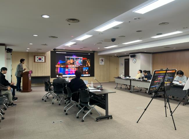 | ▲ 서구청 장태산실에서 열린 대덕대로 미디어 파사드 공모 심사 장면 |