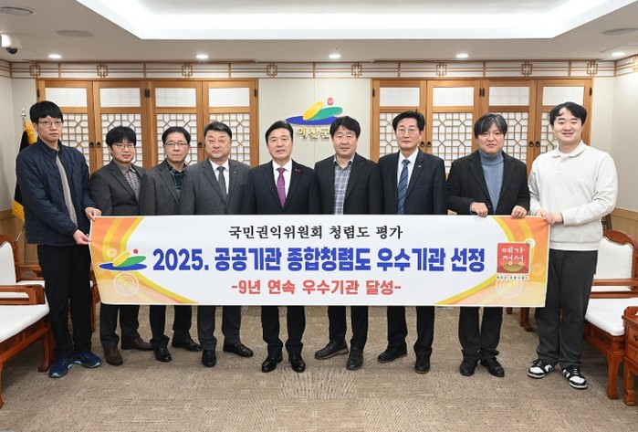 국민권익위원회는 지난 23일 2025년도 공공기관 청렴도 측정 결과를 발표했으며, 군은 충남도내 15개 시·군 가운데 유일하게 9년 연속 우수기관을 유지해 지속적인 청렴 행정 성과를 다시 한번 입증했다.