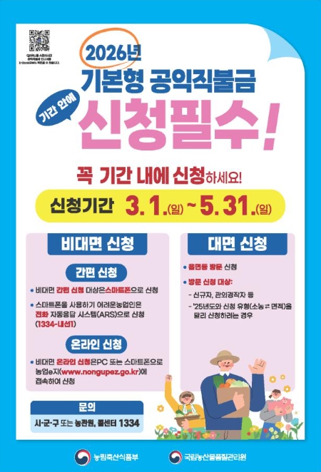 | ▲ 2026년 기본형 공익직불금 신청 안내문 |