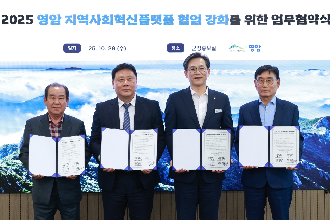 [파이낸셜경제=김예빈 기자] 영암군이 29일 군청에서 ‘2025 영암 지역사회 혁신플랫폼 협업 강화 업무협약’을 체결했다.
