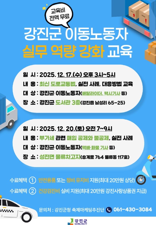 [파이낸셜경제=김예빈 기자] 강진군이 이동노동자를 위한 맞춤형 교육 프로그램을 오는 17일과 20일 2회 간 진행하며 본격적인 교육 운영에 나선다.