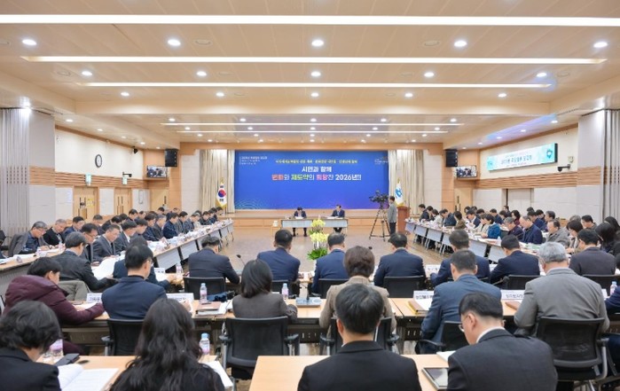 [파이낸셜경제=김예빈 기자] 여수시는 지난 15일 시청 회의실에서 정기명 여수시장 주재로 5급 이상 간부 공무원 70여 명이 참석한 가운데 ‘2026년 주요 업무 보고회’를 개최했다.