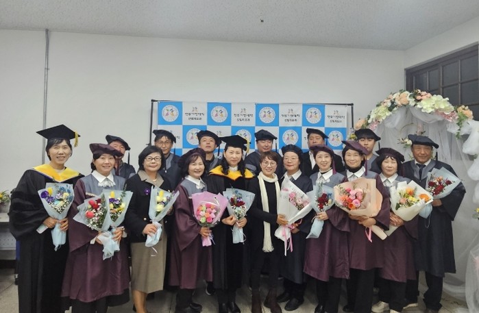 전주기전대학은 지난 12일 교내 오르겔홀에서 학위 및 전문학사 수여식을 개최하고, 산림치유과 제1기 졸업생 16명에게 전문학사 학위를 수여했다.