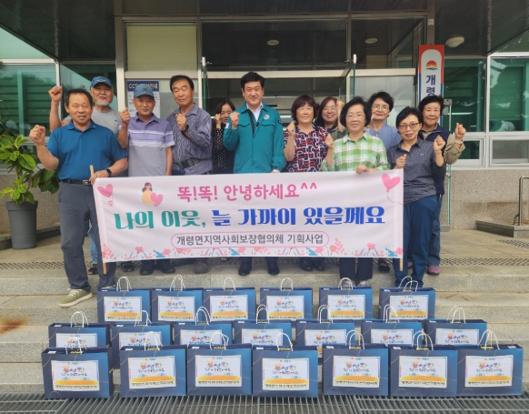 개령면 지역사회보장협의체가 기획 사업으로 실시하고 있는 『똑똑!! 안부사업』은 돌봄이 필요한 소외이웃과 협의체 위원 간 1대1로 결연을 맺어 안부를 묻고 위문 물품을 전달하는 등 찾아가는 서비스를 실천하는 이웃 돌봄 사업이다.