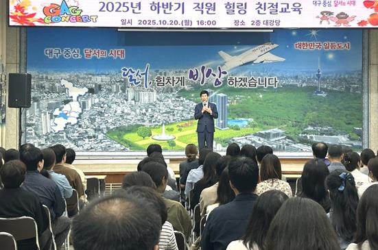 이태훈 달서구청장은 “이번 친절교육은 단순한 서비스 향상을 넘어, 변화하는 민원행정 환경에 능동적으로 대응하고 조직 전체의 친절문화를 확산하는 계기가 됐다”며 “앞으로도 지속적인 교육을 통해 달서구를 찾는 모든 민원인에게 감동을 주는 행정서비스를 실현해 나가겠다”고 말했다.